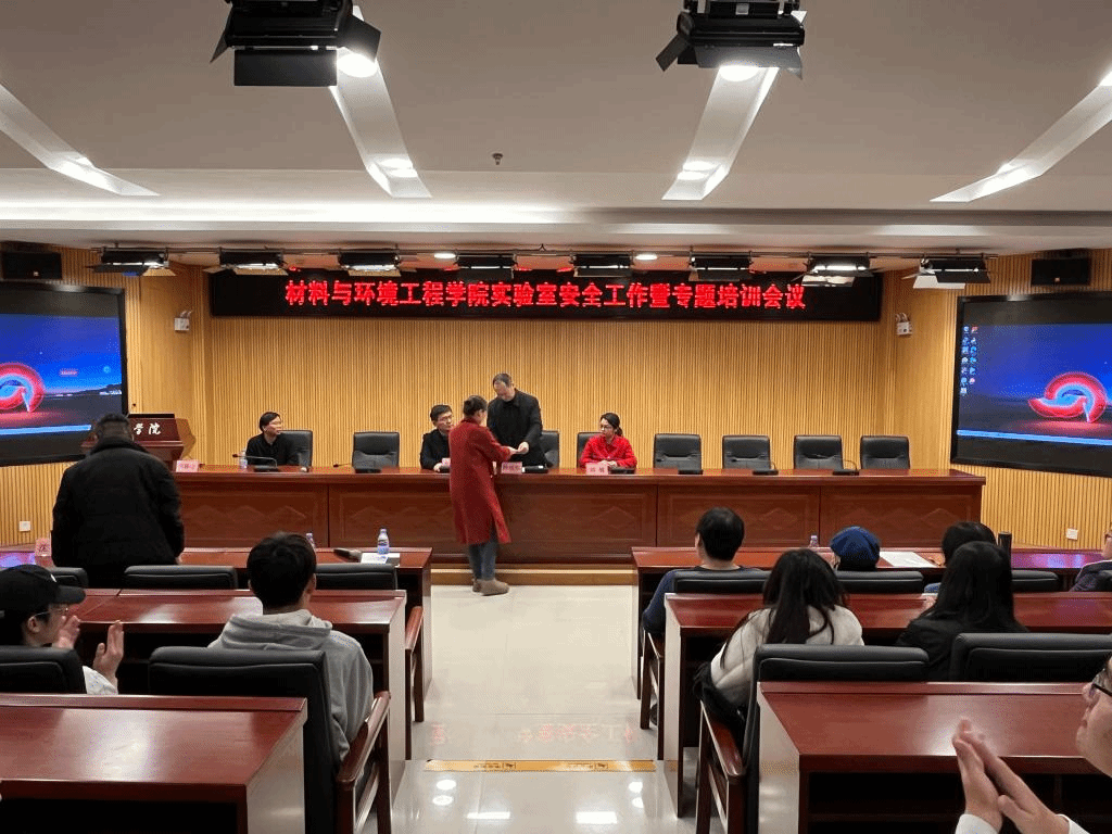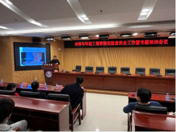 3月28日下午,材料与环境工程学院在图书馆一楼报告厅,组织全体教师开展实验安全工作暨专题培训会议,院党总支书记钟继军、院党总支副书记刘敏、副院长李晋波、教职工、联合培养研究生、22级全体新生参加会议。会议由副院长李晋波主持。
