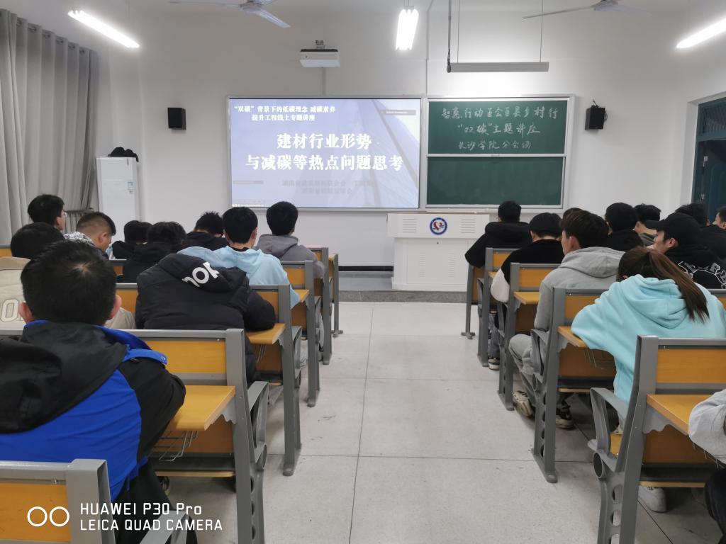 3月2日,“双碳”背景下的低碳理念,减碳素养提升工程线上专题讲座取得圆满成功。本次讲座是湖南省硅酸盐学会承接的中国科协“智惠行动 百会百县乡村行”科技志愿服务项目活动之一,由湖南省硅酸盐学会和湖南大学材料科学与工程学院主办,我校作为湖南省硅酸盐学会理事单位设立分会场,湖南省硅酸盐学会副理事长丁美荣高级工程师、湖南大学材料科学与工程学院肖汉宁教授分别授课。我校材料与环境与工程学院组织功能材料、环境工程等专业师生50余人在长智楼A208通过腾讯会议平台认真聆听了报告。