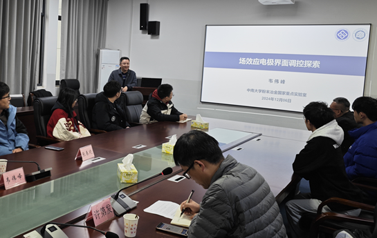 12月6日,受学院邀请,中南大学粉末研究院副院长韦伟峰教授来我院进行学术讲座,题目为《场效应电极界面调控探索》,学院30余名师生代表现场聆听了报告。