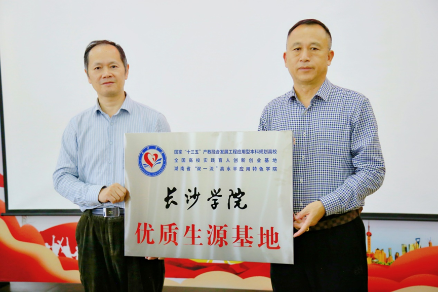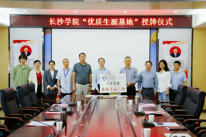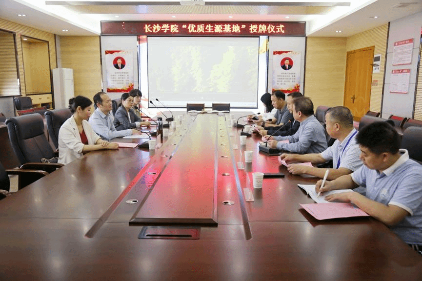随后,双方与会领导围绕具体合作内容展开深入交流,并签署了优质生源基地合作协议,钟继军代表学校为郴州市五雅高级中学授予“长沙学院优质生源地”牌匾。