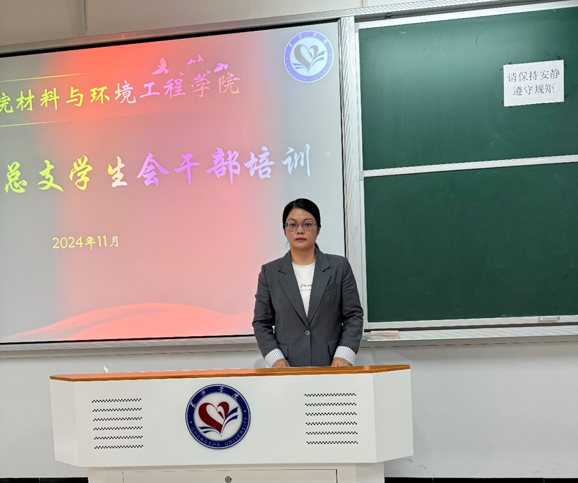为不断提高材料与环境工程学院学生干部的各项素质,激发学生干部的工作活力和责任意识,确保学院学生工作的高质量推进。2024年11月5日下午三点,在长智楼A207展开材料与环境工程学院学生干部培训,培训主讲人为学院党总支副书记刘敏,参加培训人员有学院团总支学生会全体干部和干事、21-24年级主要班级干部。