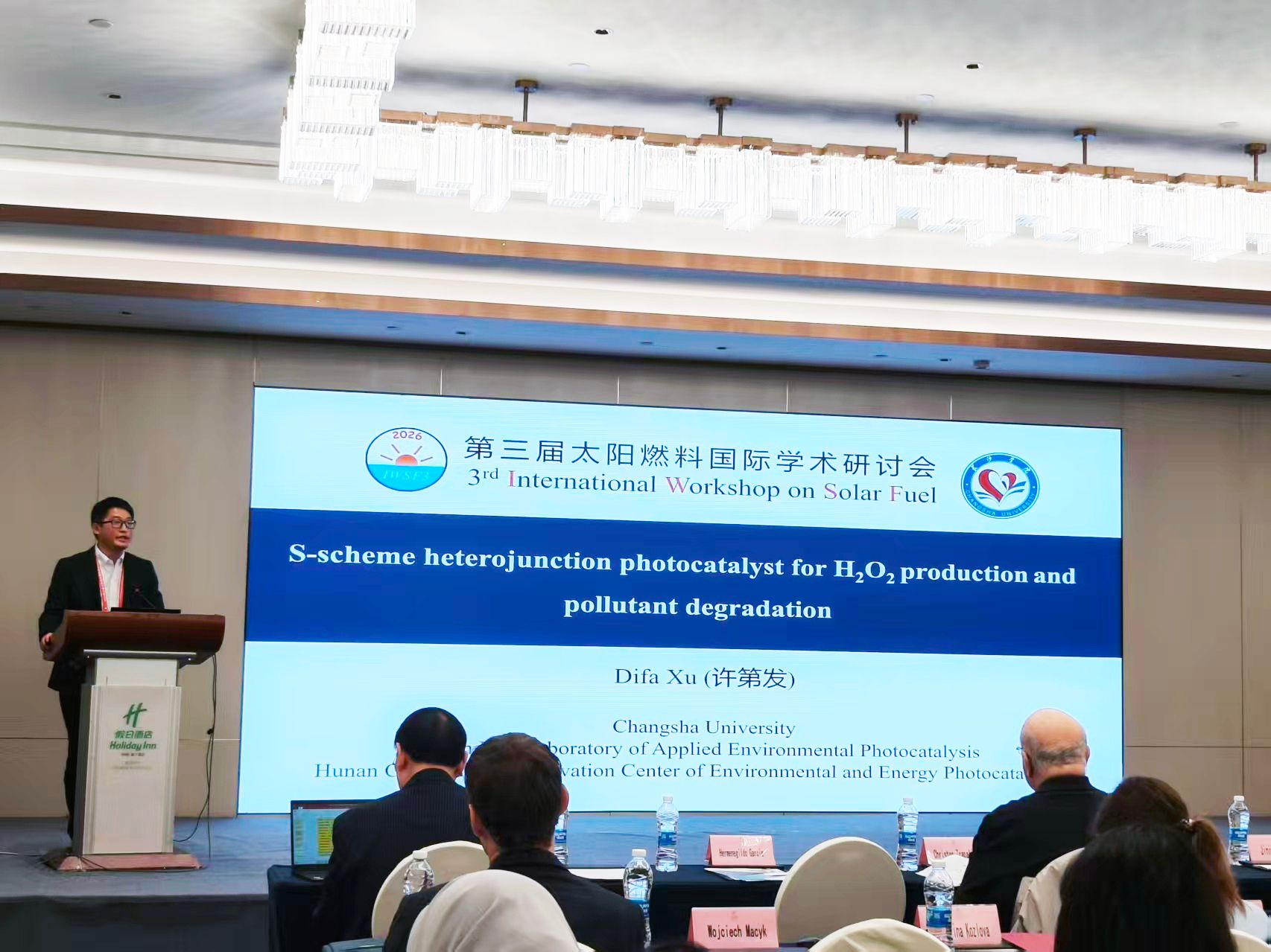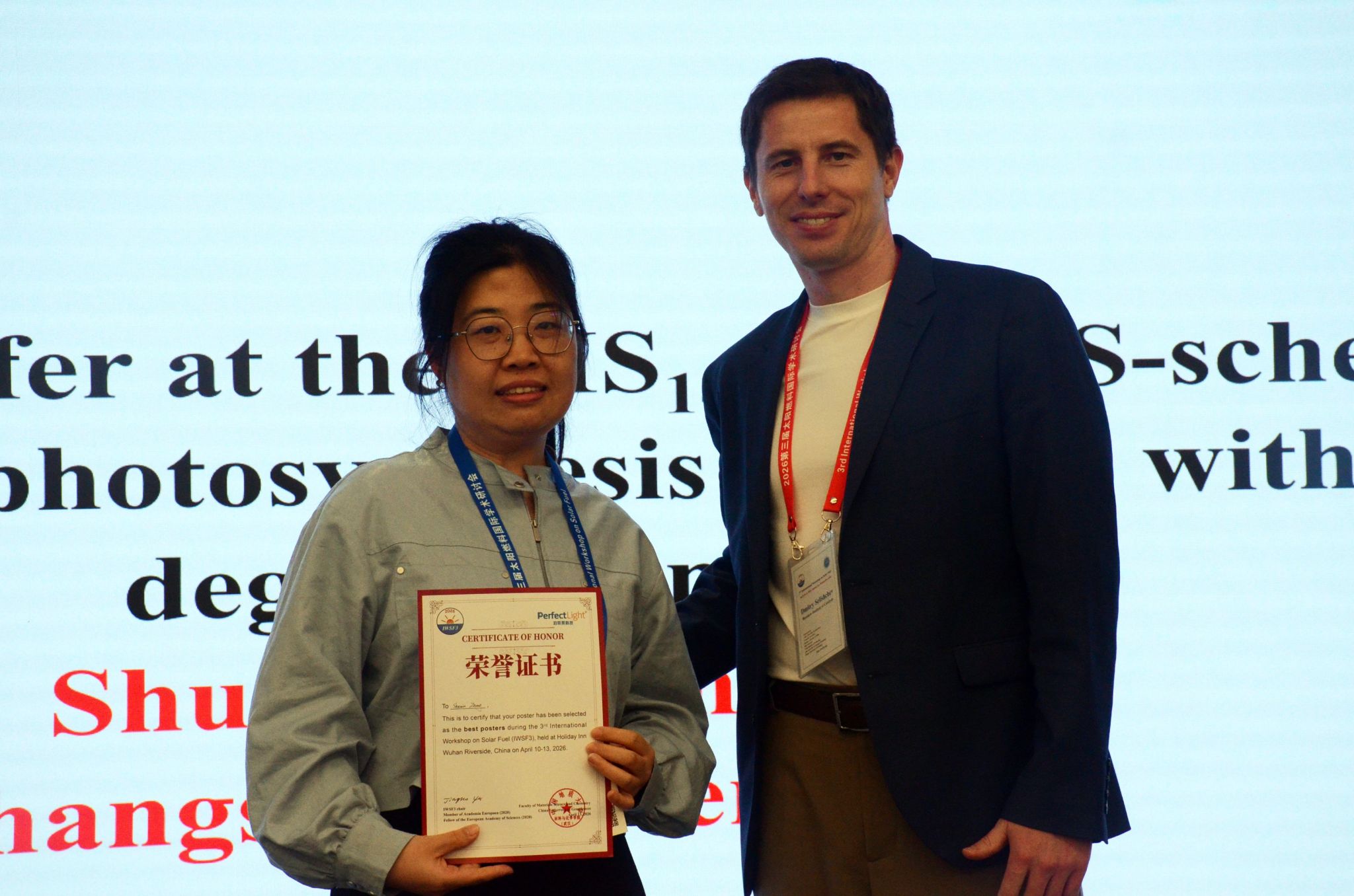 太阳燃料国际学术研讨会是该领域具有重要影响力的国际学术会议,该会议自2021年首次举办以来,受到全球该领域研究者的广泛关注,我校已连续主办三届。在本届会议中,我校派出由教师与研究生组成的10人团队参与会务组织、报告聆听及学术研讨等活动。其中,许第发博士作了题为“S-scheme heterojunction photocatalyst for H2O2 production and pollutant degradation”的邀请报告;张淑敏博士的海报“Ultrafast electron transfer at the ZIS1-x/UCN S-scheme interface enables efficient H2O2 photosynthesis coupled with tetracycline degradation”荣获优秀墙报奖。本次会议的成功举办,持续扩大了我校在太阳燃料领域的学术影响力,有效拓宽了师生的国际学术视野,进一步深化了我校与其他高校及科研机构的交流合作,为推动我校材料学学科、平台与团队的高质量发展注入了新动力。